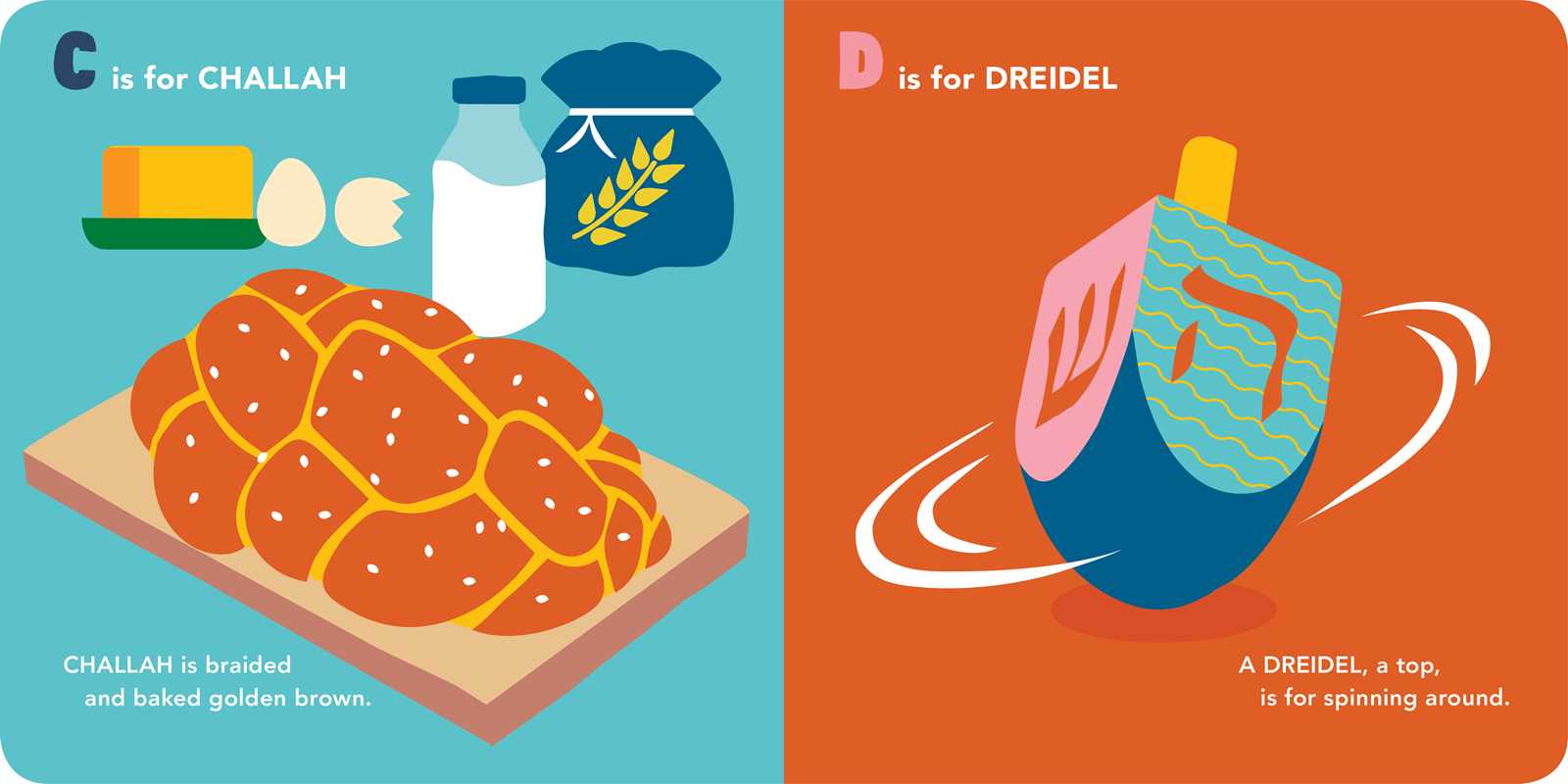 [Downtown Bookworks] This irresistible board book gives little ones (ages 0–3) an alphabetical introduction to Judaism—the delicious foods, meaningful rituals, lively holidays, expressive language, and more. Hip illustrations accompany snappy, rhyming text in a fun, fabulous package that is a must-have for any Jewish baby's nursery. This tiny tome covers quintessential foods such as bagels and brisket, rituals and holidays including Bar and Bat Mitzvahs, Shabbat, and Hanukkah, as well as important cultural references (F is for Fiddler on the Roof!) with a little Yiddish thrown in. Parents and grandparents will love sharing every concise, funny entry with the little ones in their lives.