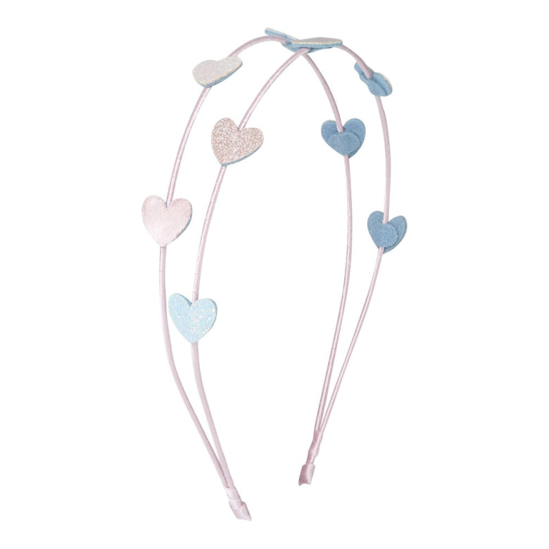 The heart double alice band features a soft, dreamy colour palette that adds a playful and sweet touch to any hairstyle. With its charming heart details, this headband is sure to complement any look!