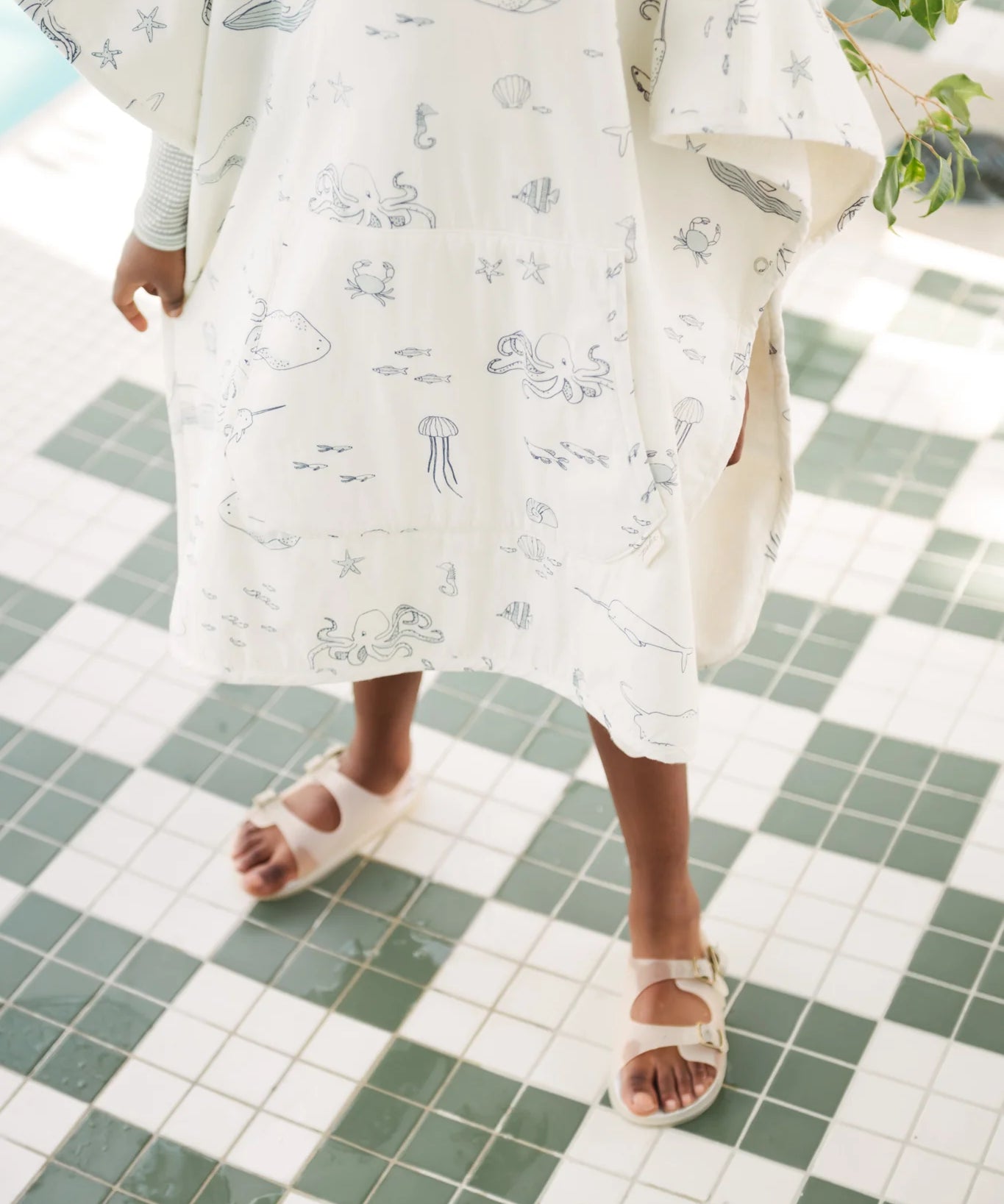 Hooded Poncho Towel Sea Bloom