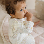 You won't be able to resist that extra squeeze when you see your little one in our oh-so-sweet Flutter Romper. An all-in-one outfit made with certified organic cotton, playful flutter sleeves and a keyhole back bring our perfectly hued prints to life, with snaps at the legs for easy peasy diaper changes.