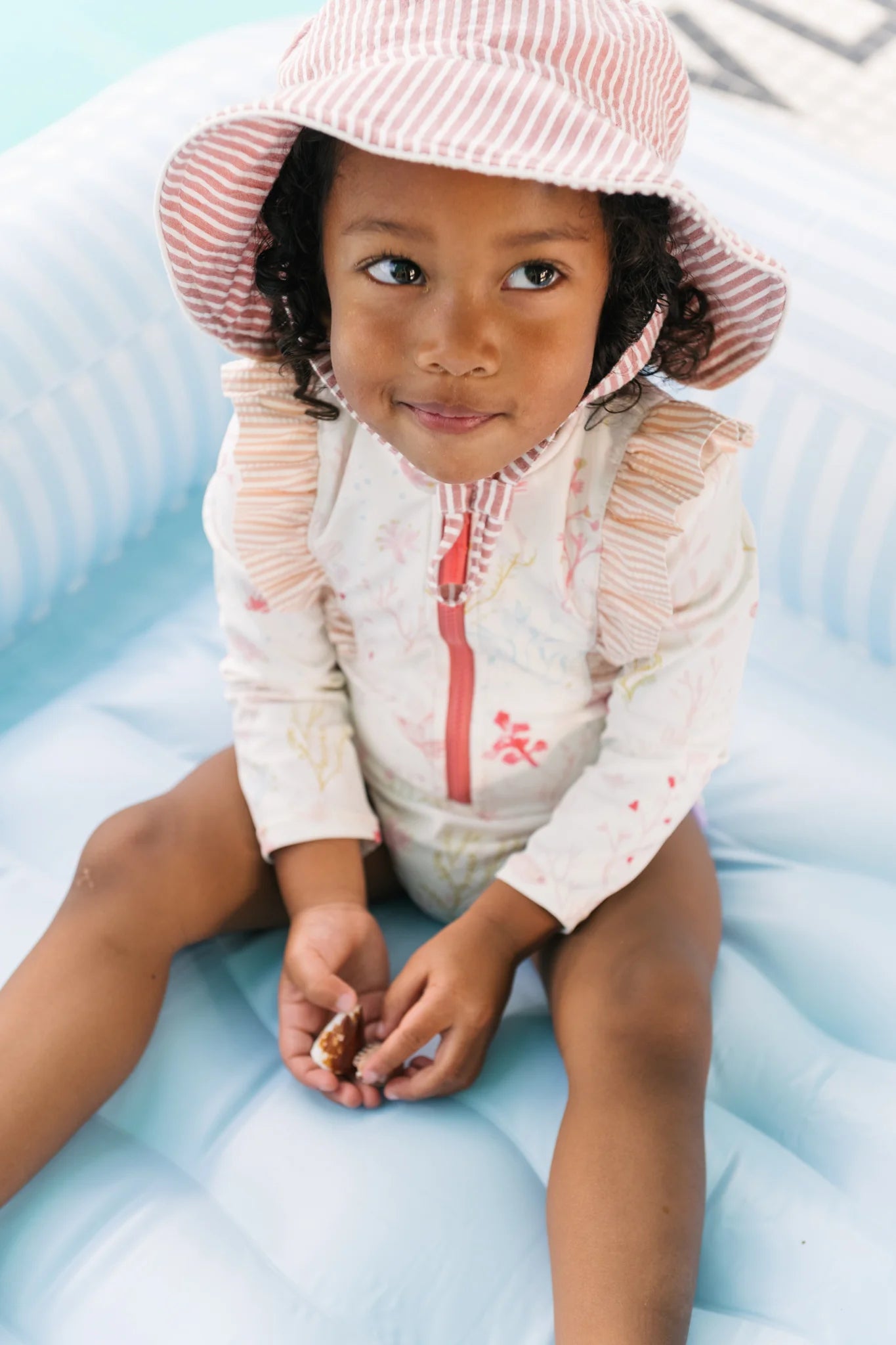 Dive into fun with little frill. Our ruffle one-piece swimsuit is fully lined and made from UPF 50+ fabric with recycled fibers, designed for a playful yet protective fit. With a ruffle trim and thoughtful details like a nylon zipper with contrast pull, protective zipper guard and tagless label, it's perfect for splashing around.