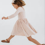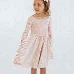 3/4 Sleeve Twirl Dress in Vintage Pink Stripes