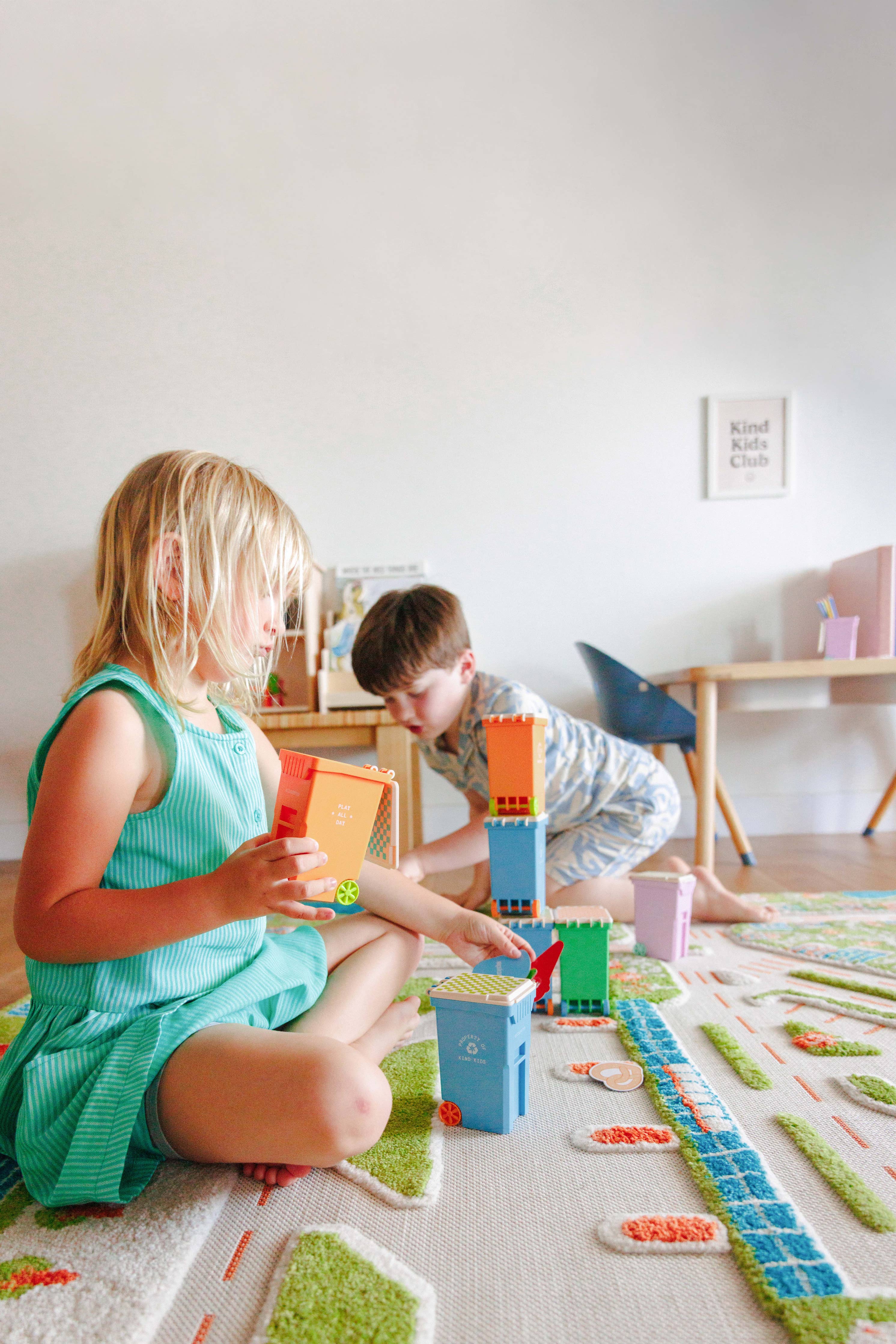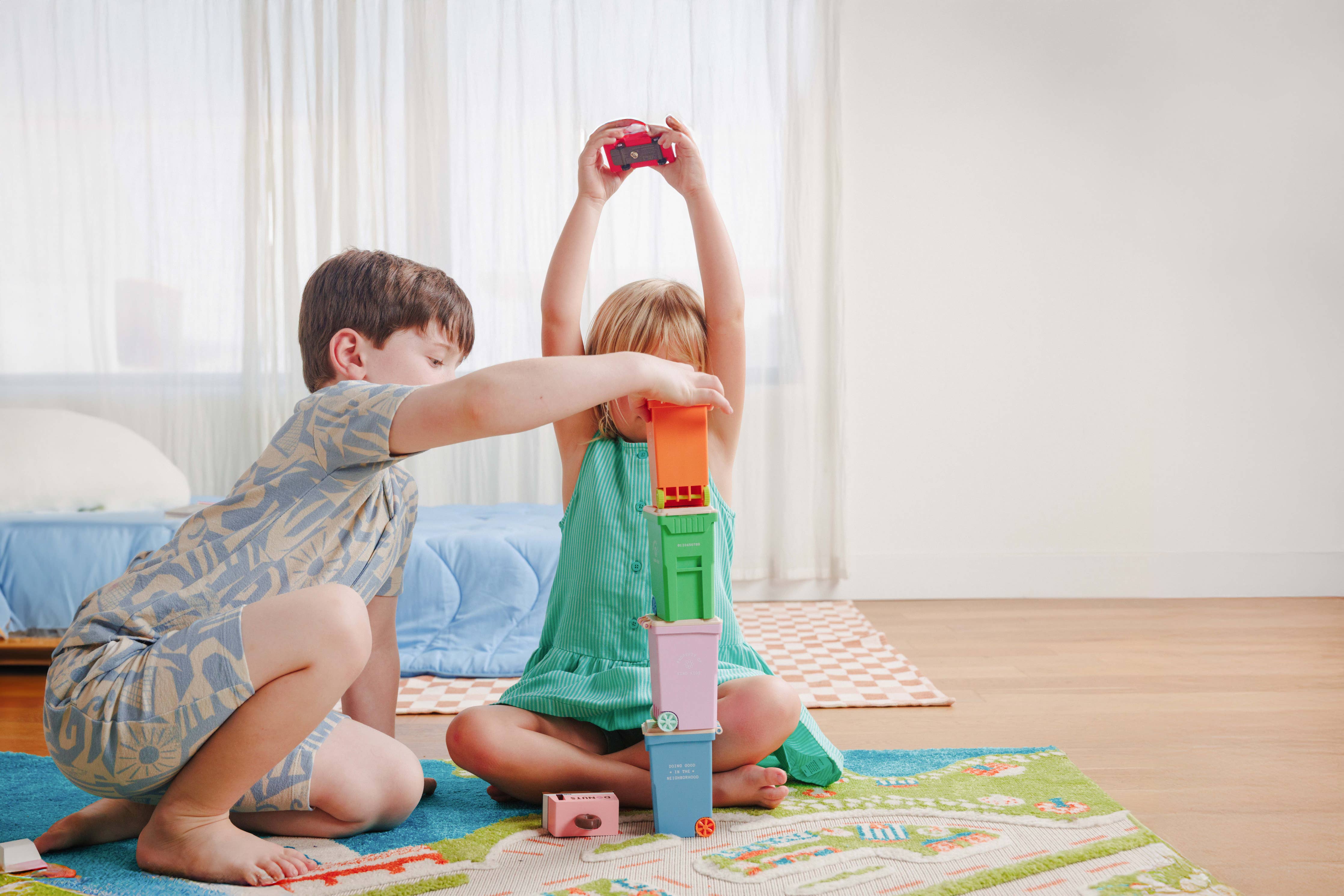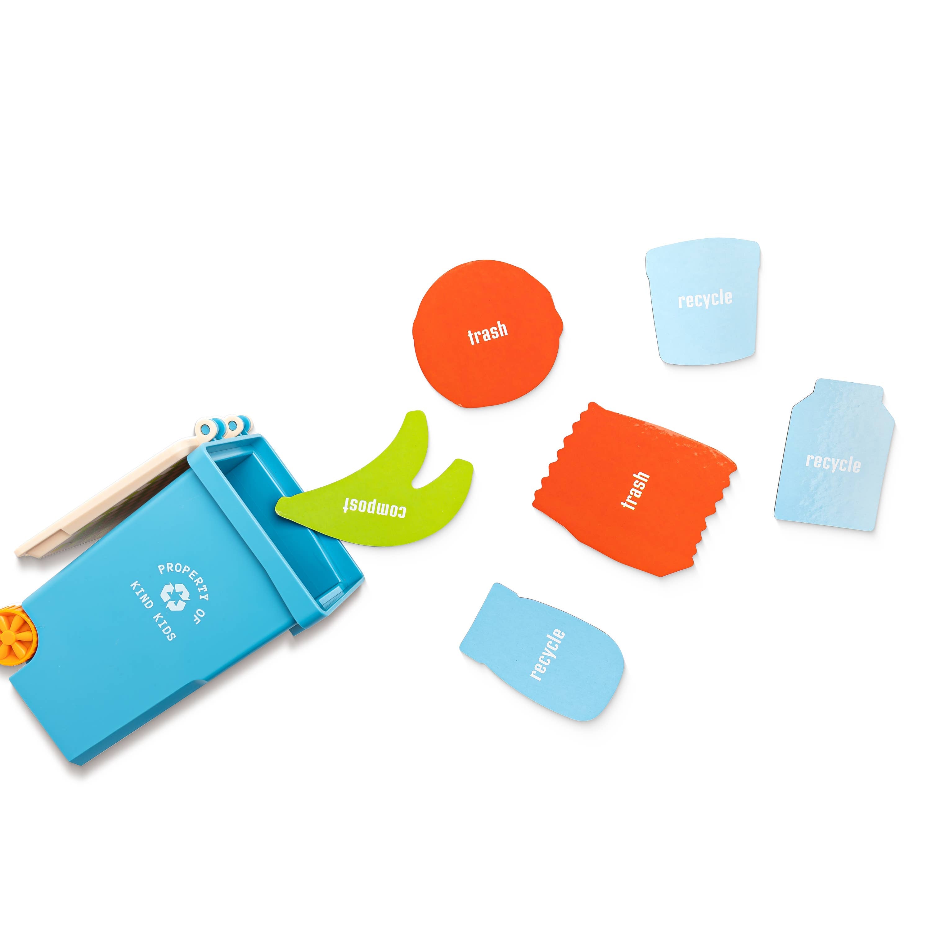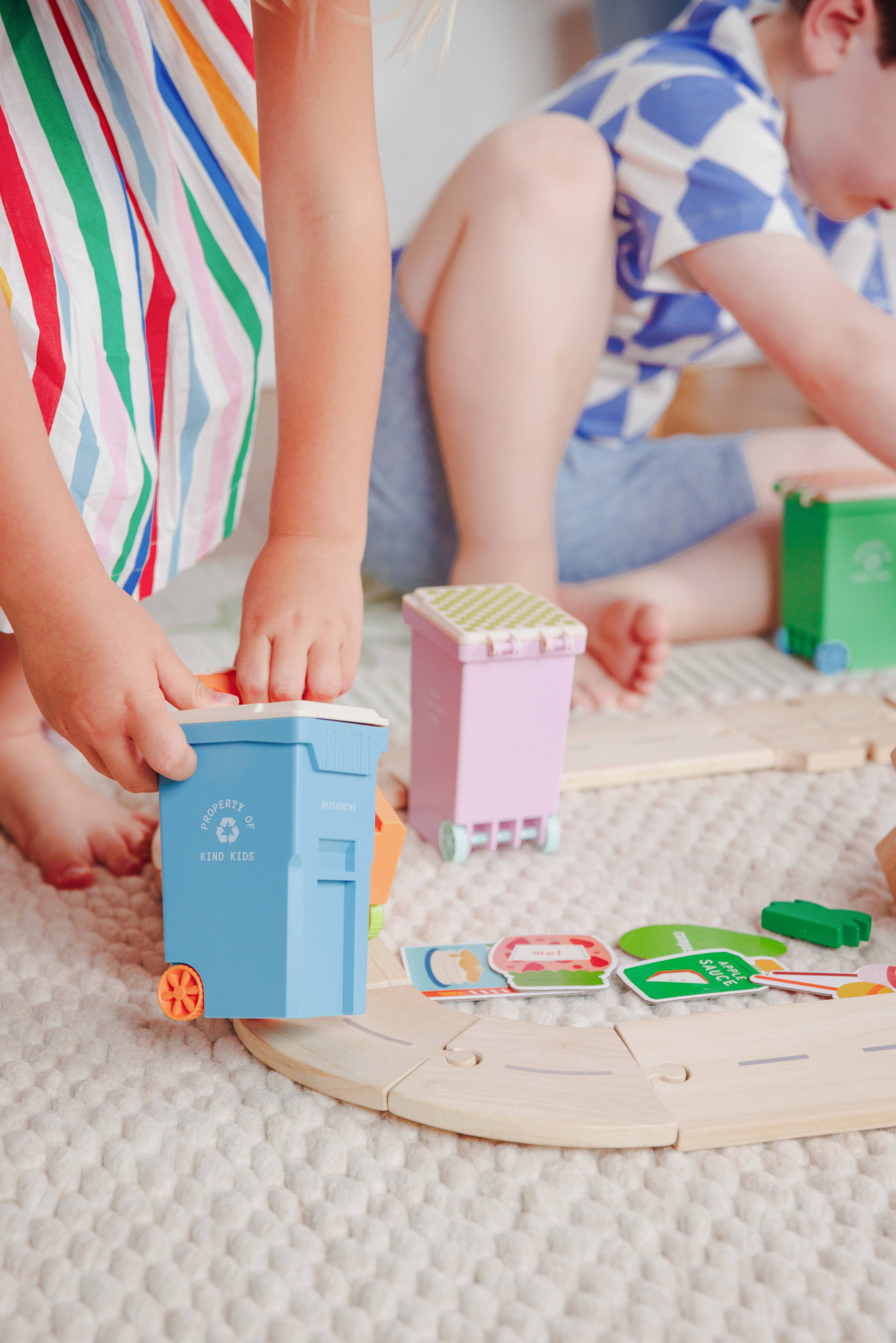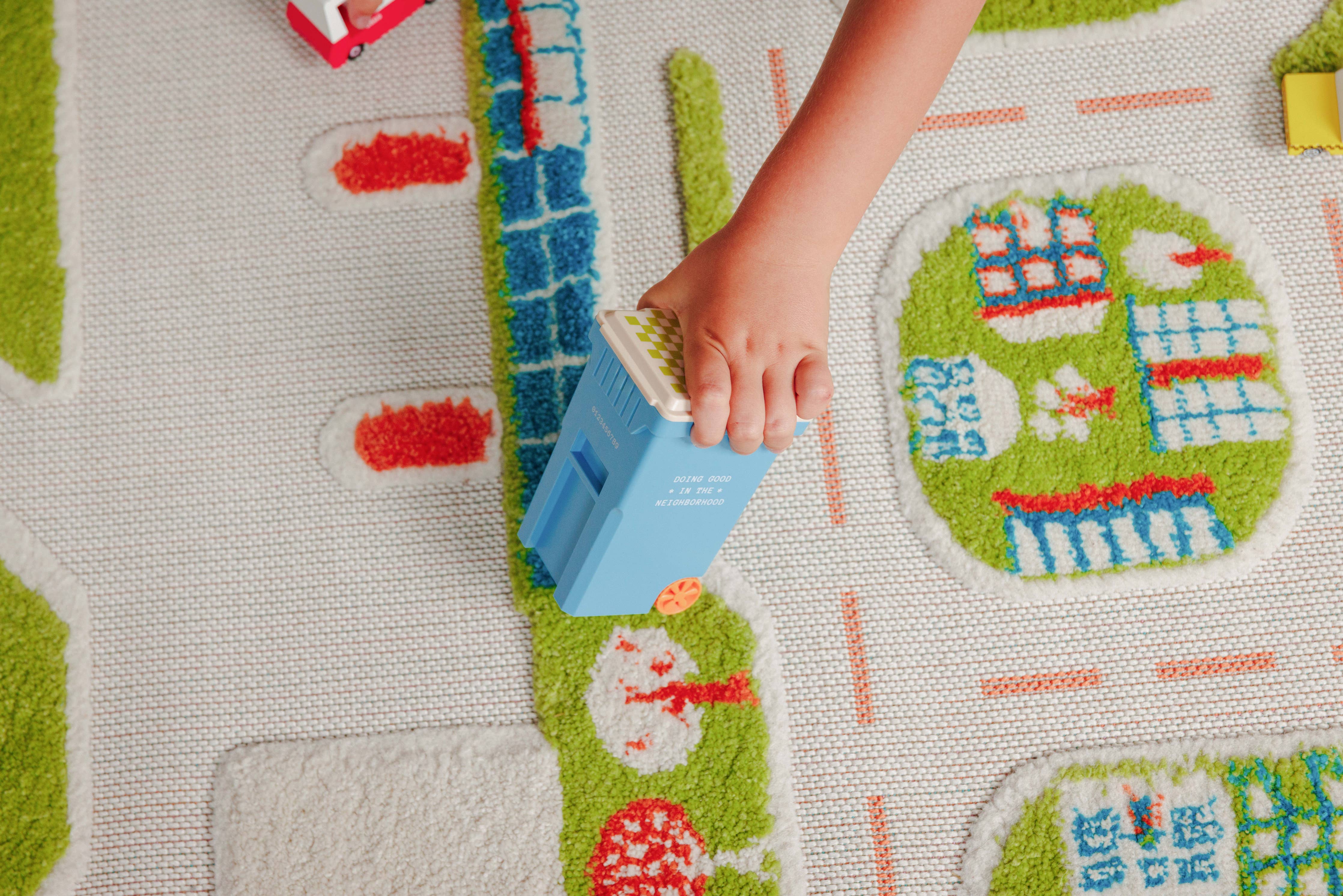 Inspired by every kid’s favorite truck, our Toy Trash Cans come in four bold colors and are built to fuel endless adventures. Each trash can comes with six cardboard trash pieces. Whether they're used to sort toys, store treasures, or act as the star of a pretend city cleanup, these cans turn cleanup time into playtime. Made with food-grade materials, they’re safe, durable, and delightfully kid-approved. - Trash can - Six cardboard pieces of trash - Box - BPA FREE - PVC FREE - PHTHALATES FREE - LEAD FREE - LATEX FREE - Made with food-grade materials