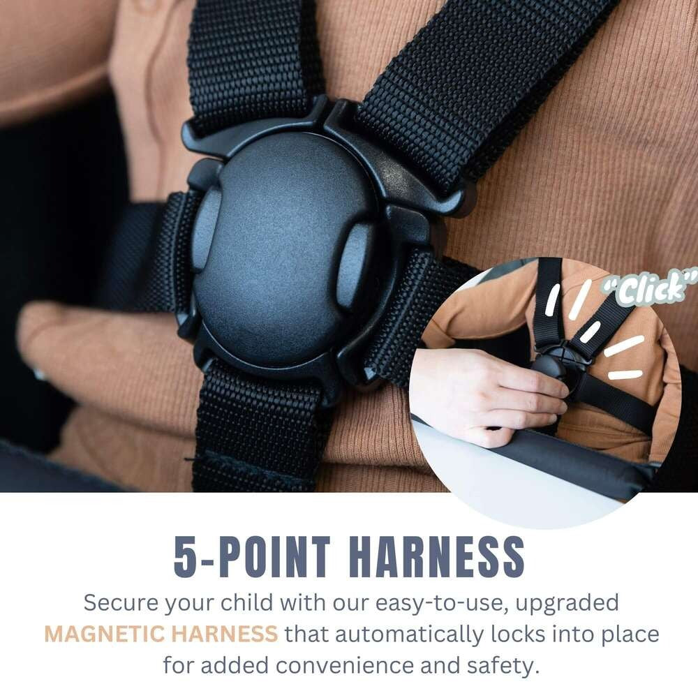 Is your child an escape artist? Do you have problems keeping your child properly in seats? The Perch is made with a 5 point harness. The harness includes a unique rear slide to properly adjust the harness to stay on your child’s shoulders.