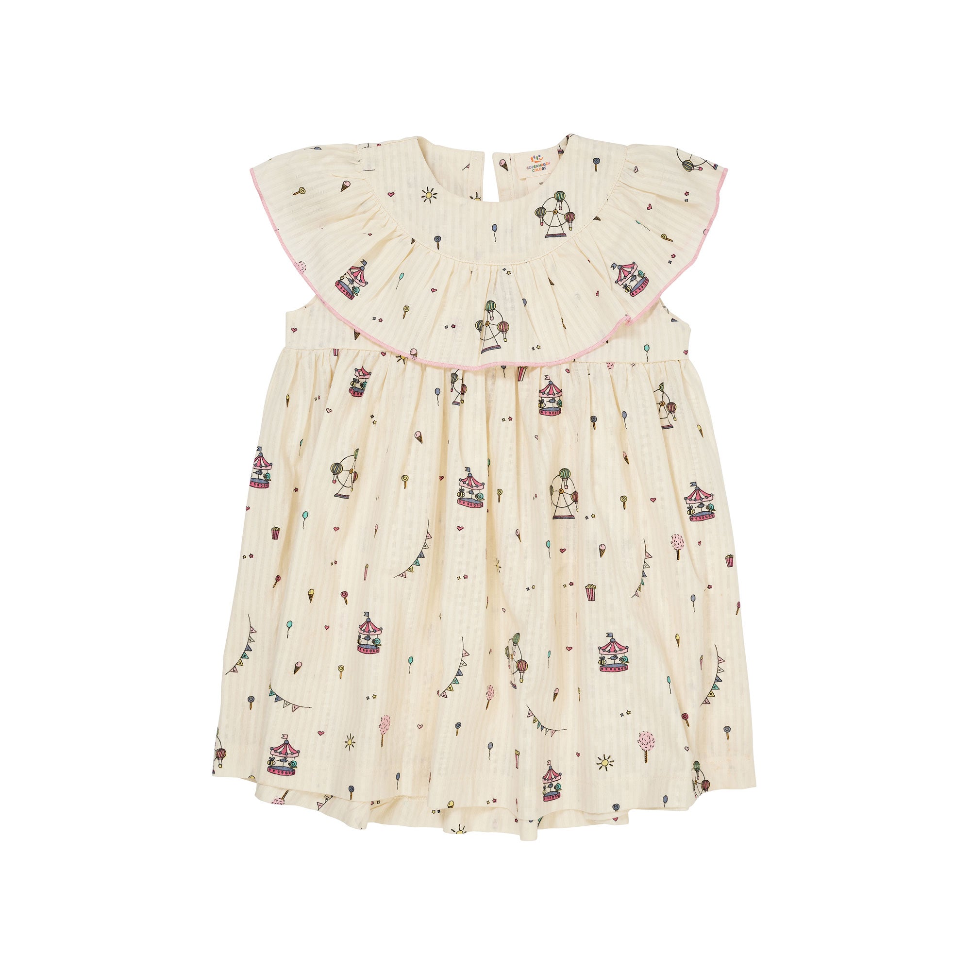 Dress up for limitless play with these irresistibly cute printed dress featuring a pink piping delicately placed at the frill edge. Crafted from 100% organic cotton, this dress boast a woven dobby fabric. Tailored for flexible and easy movement, they are designed to keep up with the active spirit of play. Wash the dress again and again at 30 degrees, and it will maintain their shape flawlessly. Bid farewell to lint concerns, and rest assured that the colors will resist fading. Elevate your little one's playtime wardrobe with these adorable and functional printed dress designed for comfort and durability.