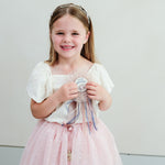 • Finished with layers of chunky glitter and delicate satin ribbons in an array of rainbow colours